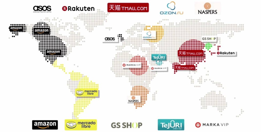 The Department for International Trade produced a slide that showcases the main marketplaces around the world and as we can see Amazon is only dominant in western countries. T-mall, for example, dominates China.