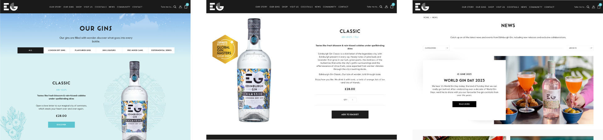 Base page templates were created to be utilised across all of IMD’s brands websites, allowing for significant time and cost savings. Digital Six could then create and style unique custom pages where necessary (like Edinburgh Gin’s homepage), ensuring that each brand had the opportunity to showcase its distinct features and offerings.