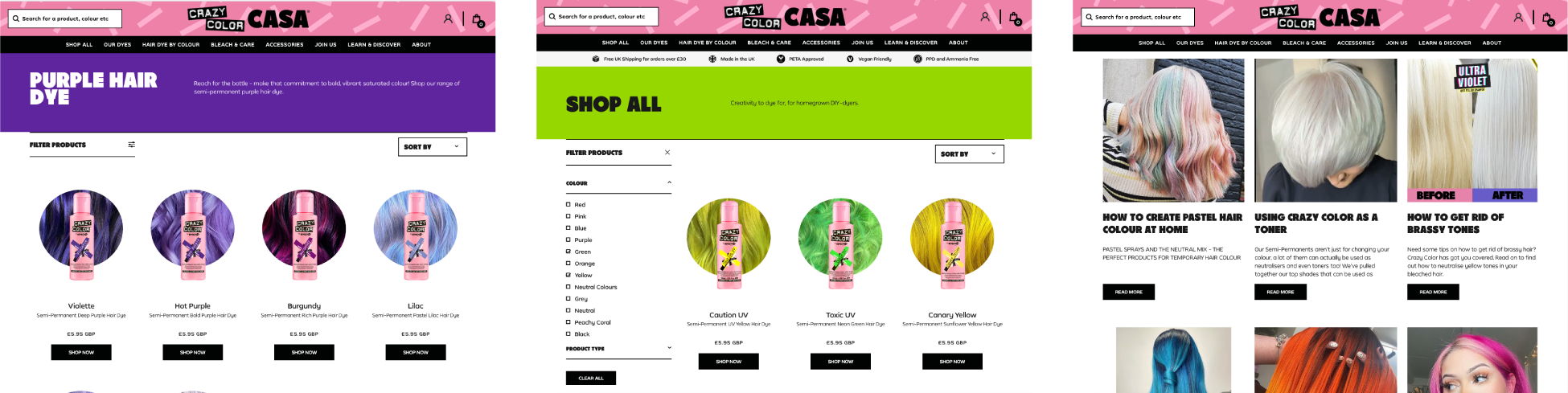Crazy Color’s standout feature is the ability to design and create fully customised ecommerce page templates, aligning with their brand ethos that celebrates individuality and encourages self-expression through vibrant hair.