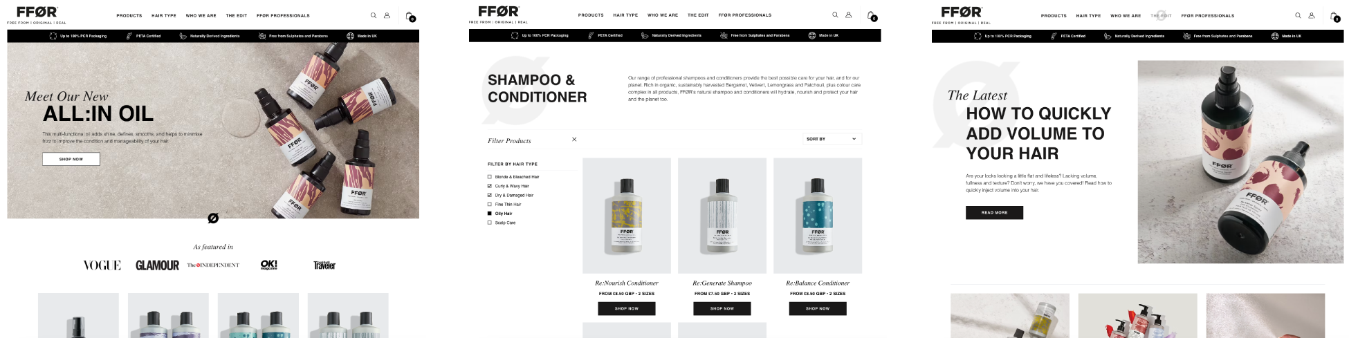 Prismic CMS, on the other hand, empowers FFØR Haircare to effortlessly manage and update their content, enabling them to create visually stunning and engaging ecommerce webpages.
