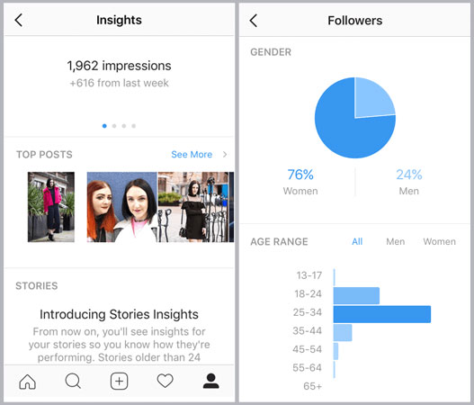 The other huge benefit of switching to an Instagram Business Page is the Insights feature. This can help you understand all sorts of things including which posts get the most engagement and what time of day you should be scheduling your Instagram posts. These are the insights currently available: