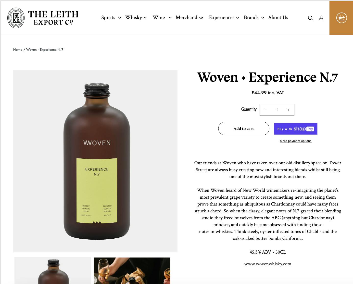 Here’s an example of an ecommerce product page on Leith Export Co.’s Shopify website: