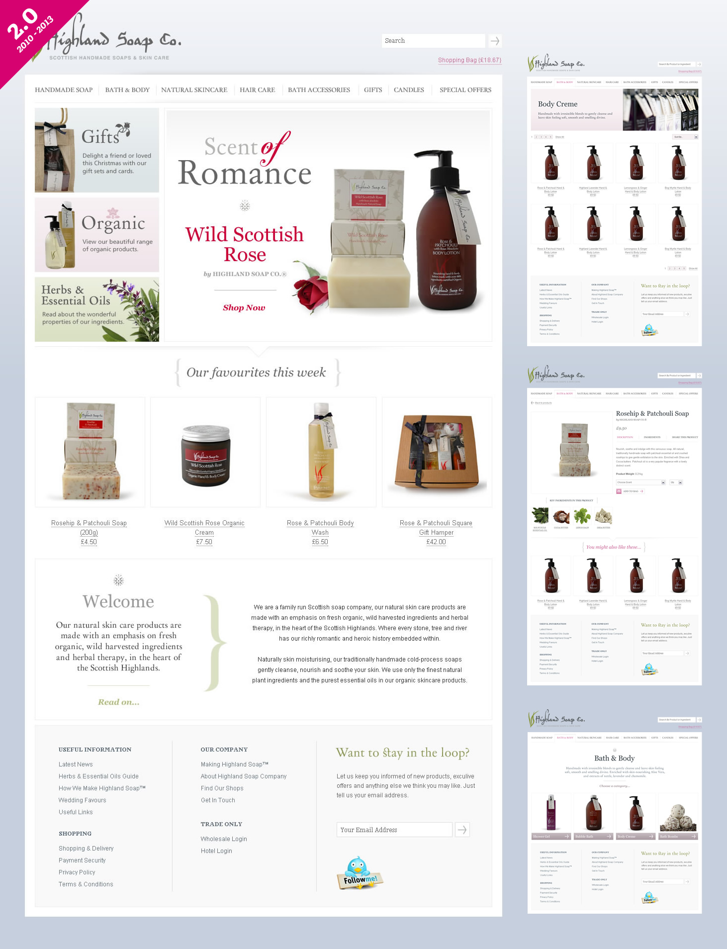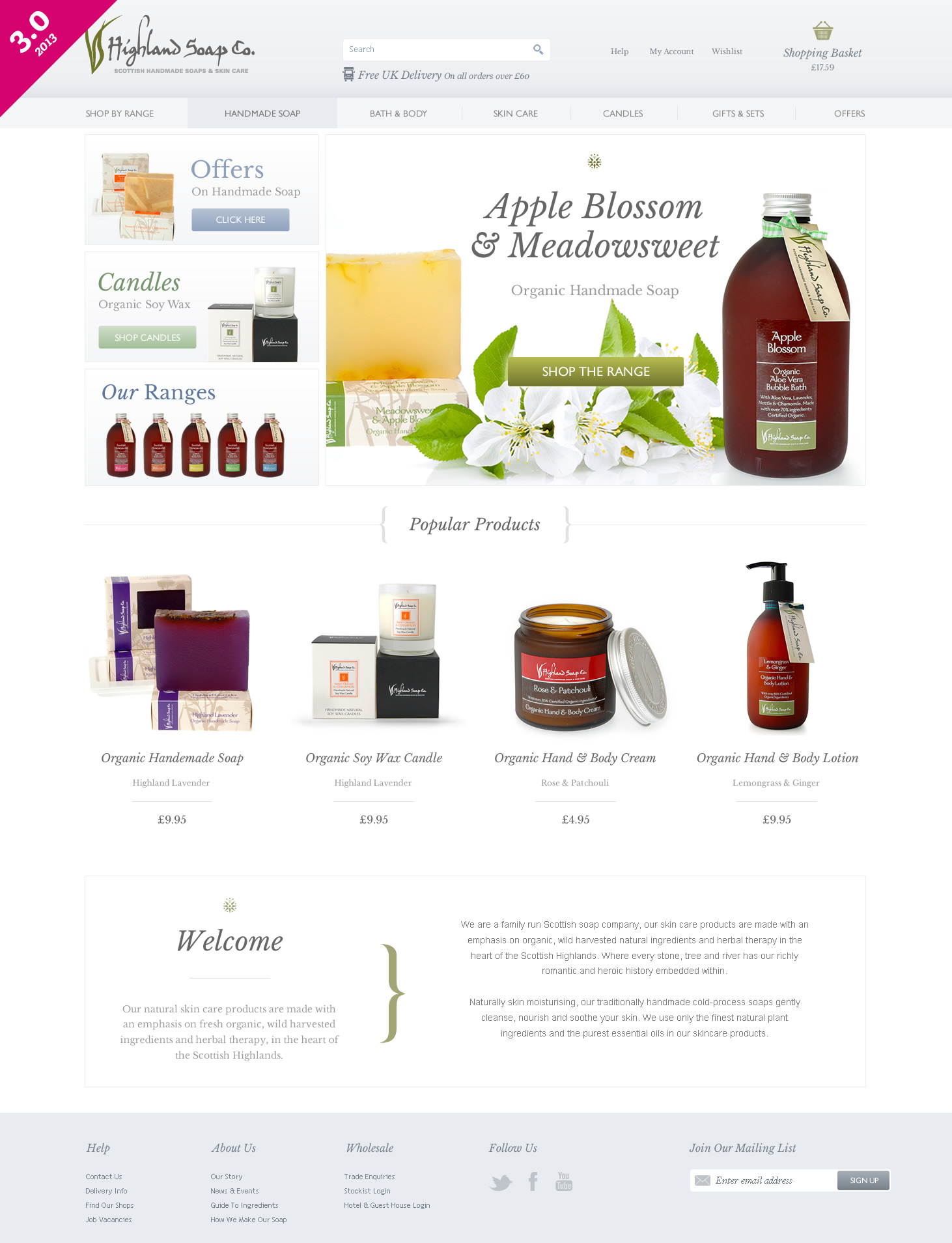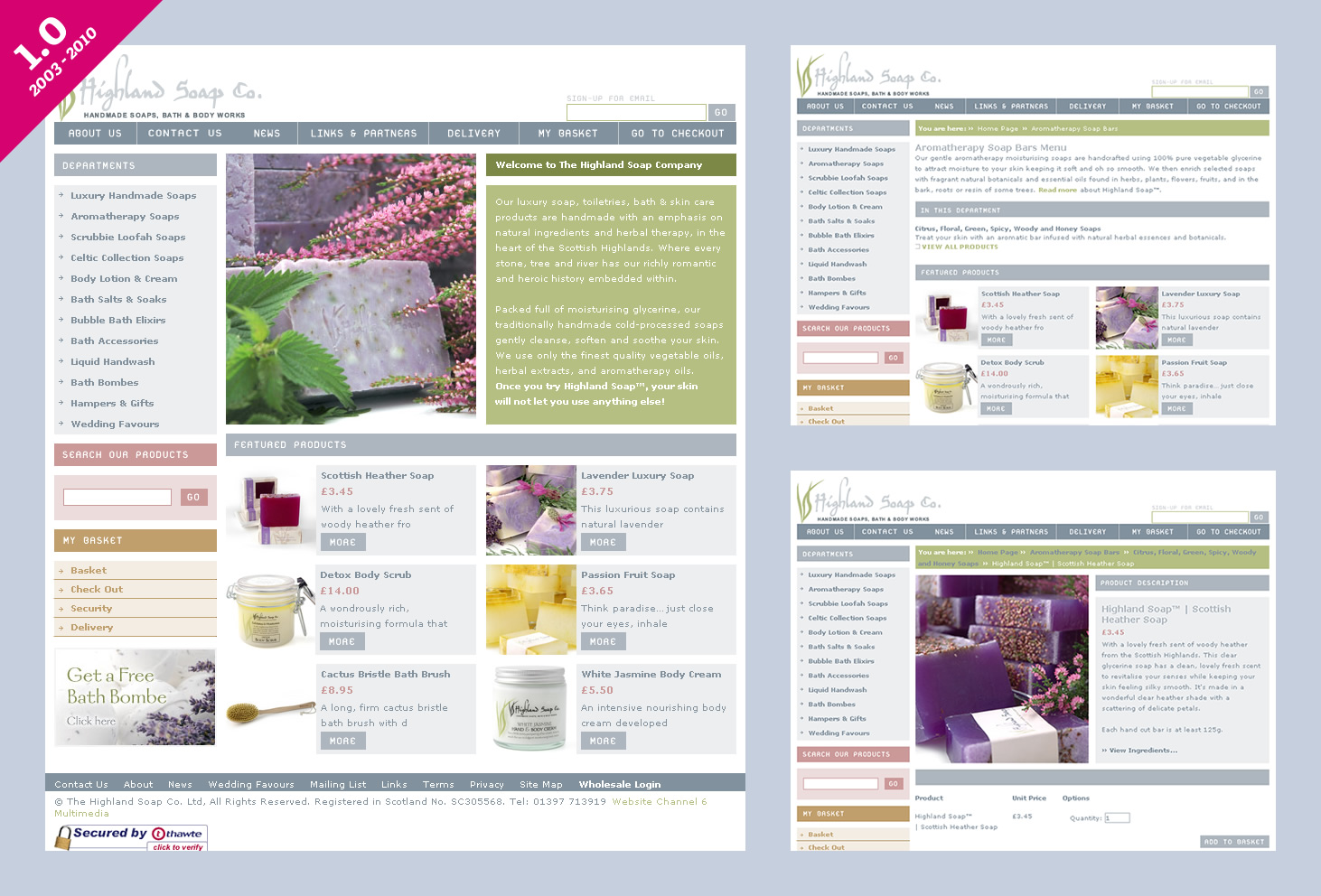 The Highland Soap Co. has been a client of ours for 10 years and we’re proud to have been part of this wonderful company’s story for as long as we have. Their ecommerce website www.highlandsoaps.com has flourished since it’s inception in 2003, and now that we’ve just launched version 3.0, we thought we’d take a look back at how the site has evolved over the years…