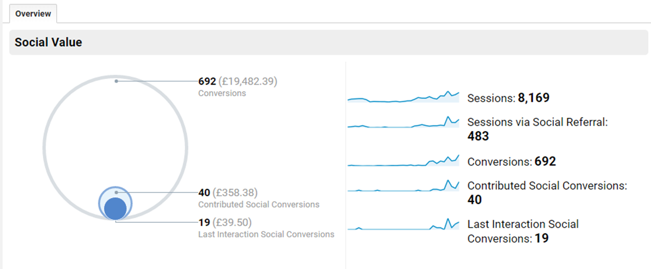 This is one of the main reports to use when proving ROI for social media. It tells you the total number of conversions and the total value of sales made as a result of the referrals from each platform.