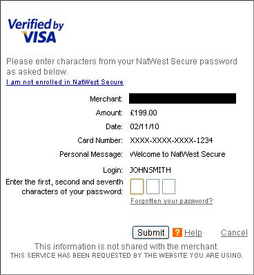 Visa’s system is called Verified by Visa whilst Mastercard plumped for the less catchy Mastercard Securecode. Both are based on the same technology & the names all refer to the same basic system. After confirming their details with the merchant, the customer is presented with a window that asks for some personal information, be it letters of a password or a code sent by SMS, which is intended to verify their identity. If correct, the merchant is informed of the success & the customer proceeds to the thanks page.